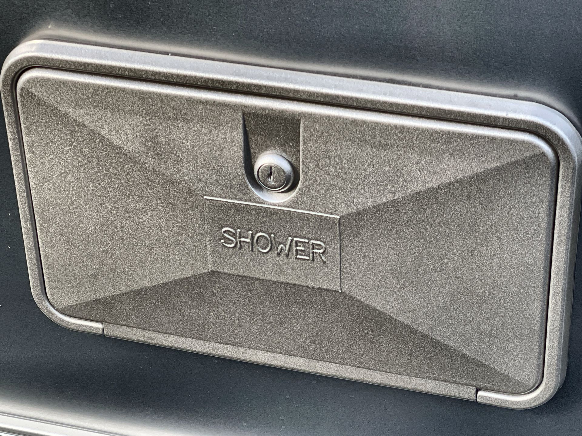 Storage is ample, with carefully designed cabinets and closets to store all your travel necessities securely. The bathroom features a separate shower and toilet area, providing privacy and convenience.