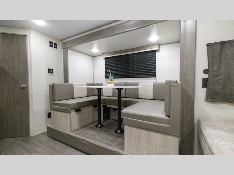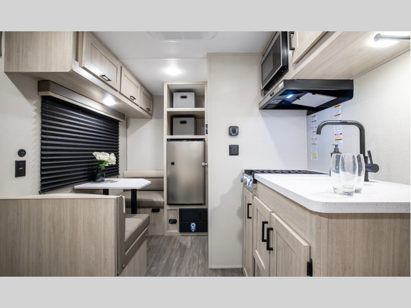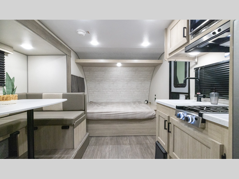 Forest River Aurora Light travel trailer 15RBX highlights: Queen Bed Booth ... more about Aurora Light 15RBX