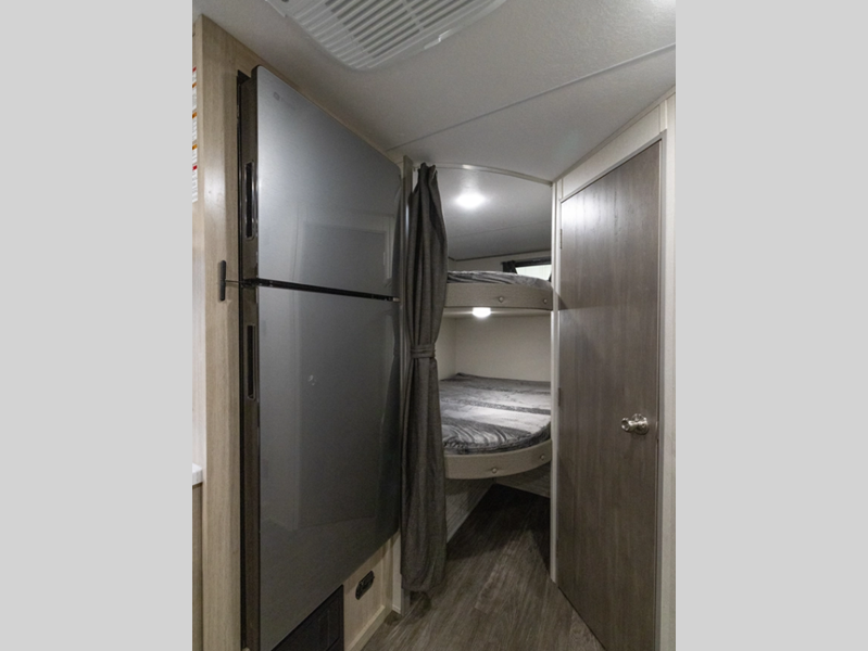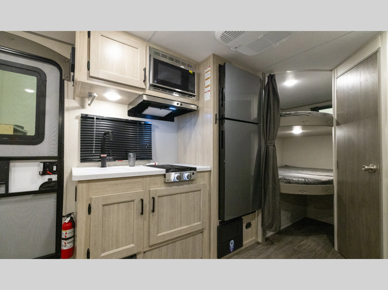 Sleeps 8 Slides 1 Length 23 ft 1 in Ext Width 7 ft 6 in Ext Height 10 ft 1 in Int Height 6 ft 2 in Hitch Weight 556 lbs GVWR 5656 lbs Dry Weight 4183 lbs Cargo Capacity 1473 lbs Fresh Water Capacity 38 gals Grey Water Capacity 30 gals Black Water Capacity 30 gals Furnace BTU 20000 btu Number Of Bunks 2 Available Beds RV Queen Refrigerator Type 12V GE Stainless Refrigerator Size 10.7 cu ft Cooktop Burners 2 Shower Size 24" x 36" Number of Awnings 1 LP Tank Capacity 20 lbs Water Heater Type Tankless AC BTU 13500 btu Awning Info 15' Electric w/Multicolored LED Light Strip and Remote Axle Count 1 Number of LP Tanks 1 Shower Type Tub/Shower Combo Electrical Service 30 amp Similar Floorplans