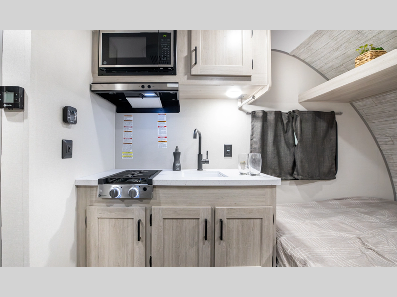 Sleeps 3 Length 16 ft Ext Width 7 ft 6 in Ext Height 9 ft 10 in Int Height 6 ft 6 in Hitch Weight 277 lbs GVWR 4277 lbs Dry Weight 2705 lbs Cargo Capacity 1572 lbs Fresh Water Capacity 44 gals Grey Water Capacity 30 gals Black Water Capacity 30 gals Furnace BTU 20000 btu Available Beds RV Queen Refrigerator Type GE Stainless Steel 12V Refrigerator Size 3.3 cu ft Cooktop Burners 2 Shower Size 24" x 32" Number of Awnings 1 LP Tank Capacity 20 Water Heater Type Tankless AC BTU 13500 btu Awning Info 8' Electric w/Multicolor Lights and Remote Axle Count 1 Number of LP Tanks 1 Shower Type Standard -
