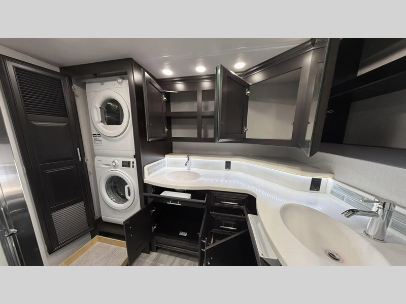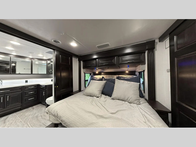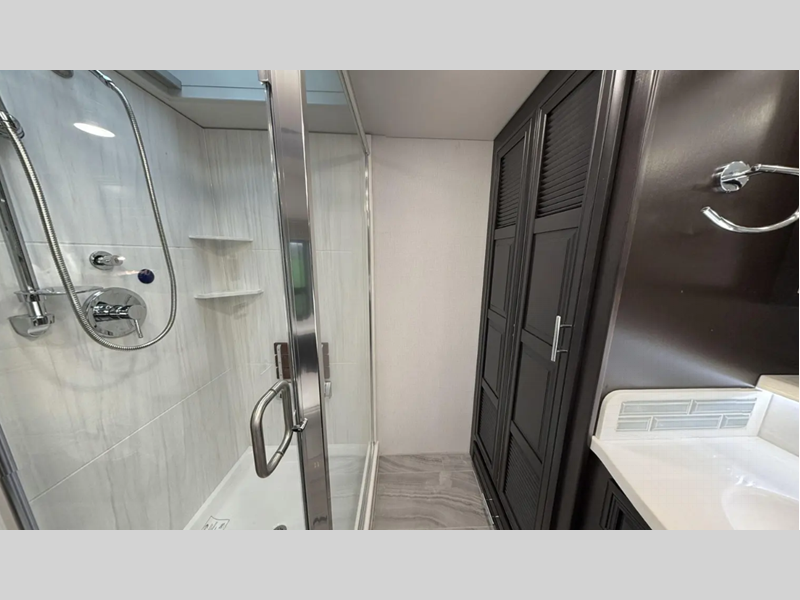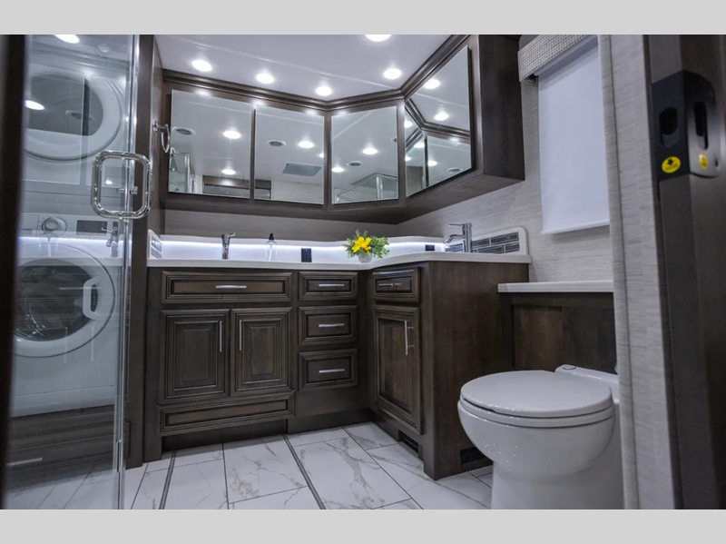 Your everyday needs will be exceeded with easy living interiors, modern décor, and an abundance of comfort. There is a front independent suspension and an optional rear V-Ride suspension system so you can carry more gear with a smoother ride and a more stable handling. Inside, you'll love the polished porcelain tile throughout and the hardwood raised panel cabinet doors, plus this coach is all electric to power you through many excursions!