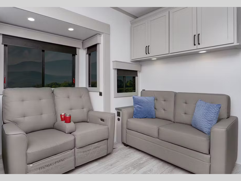 - Hydraulic slideouts on main level w/ individual switches & electric slideouts on upper deck (model specific)